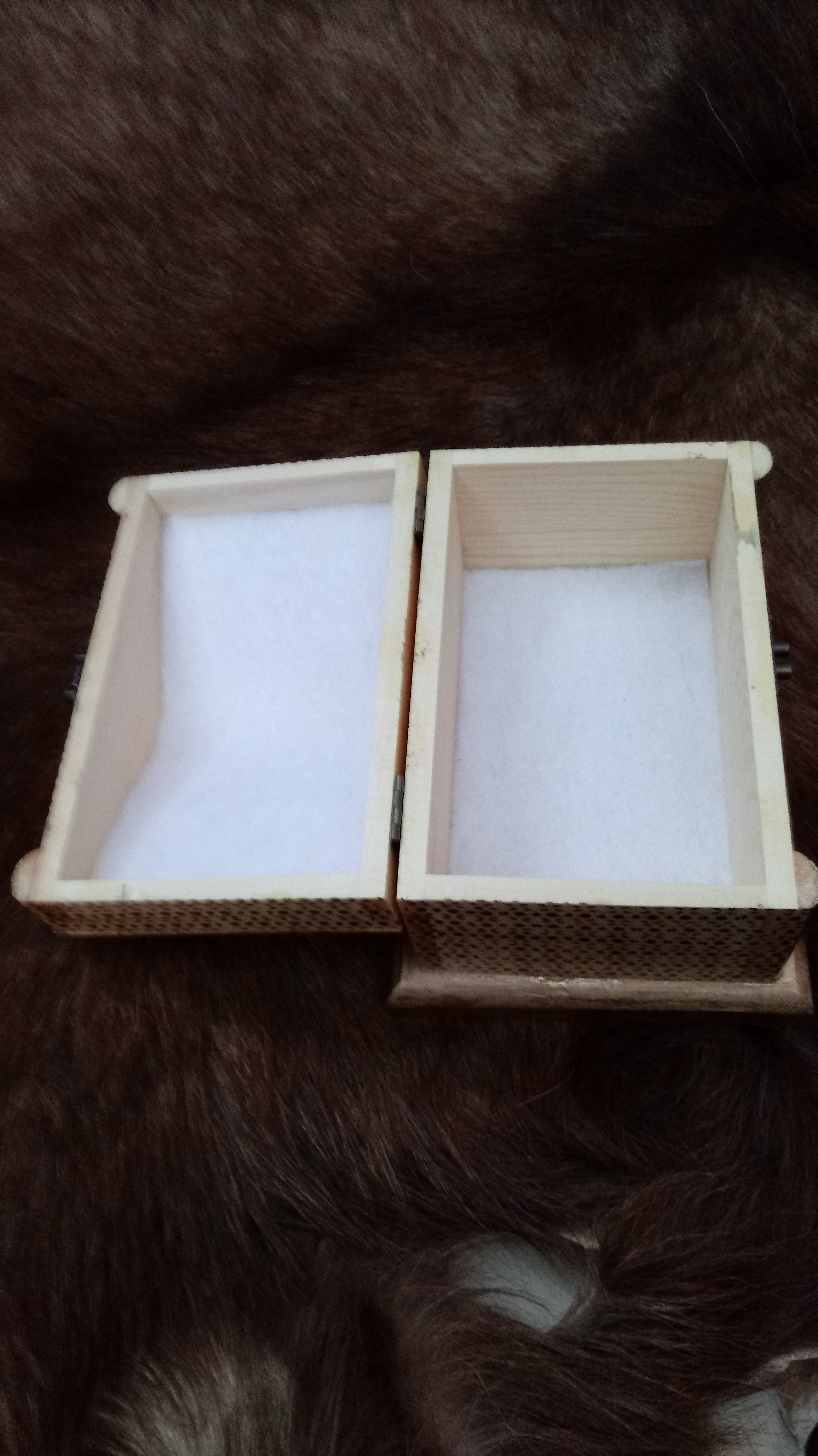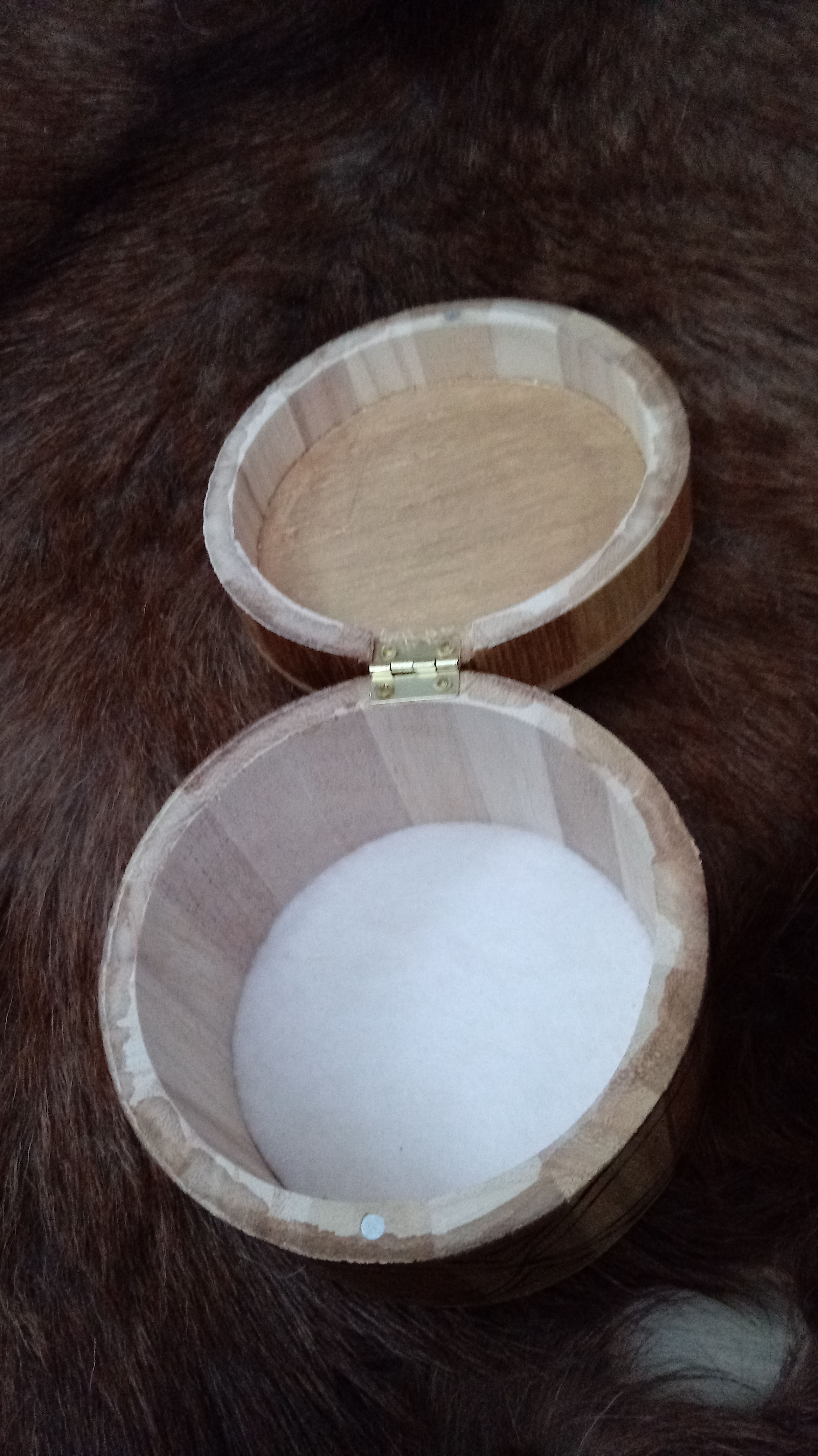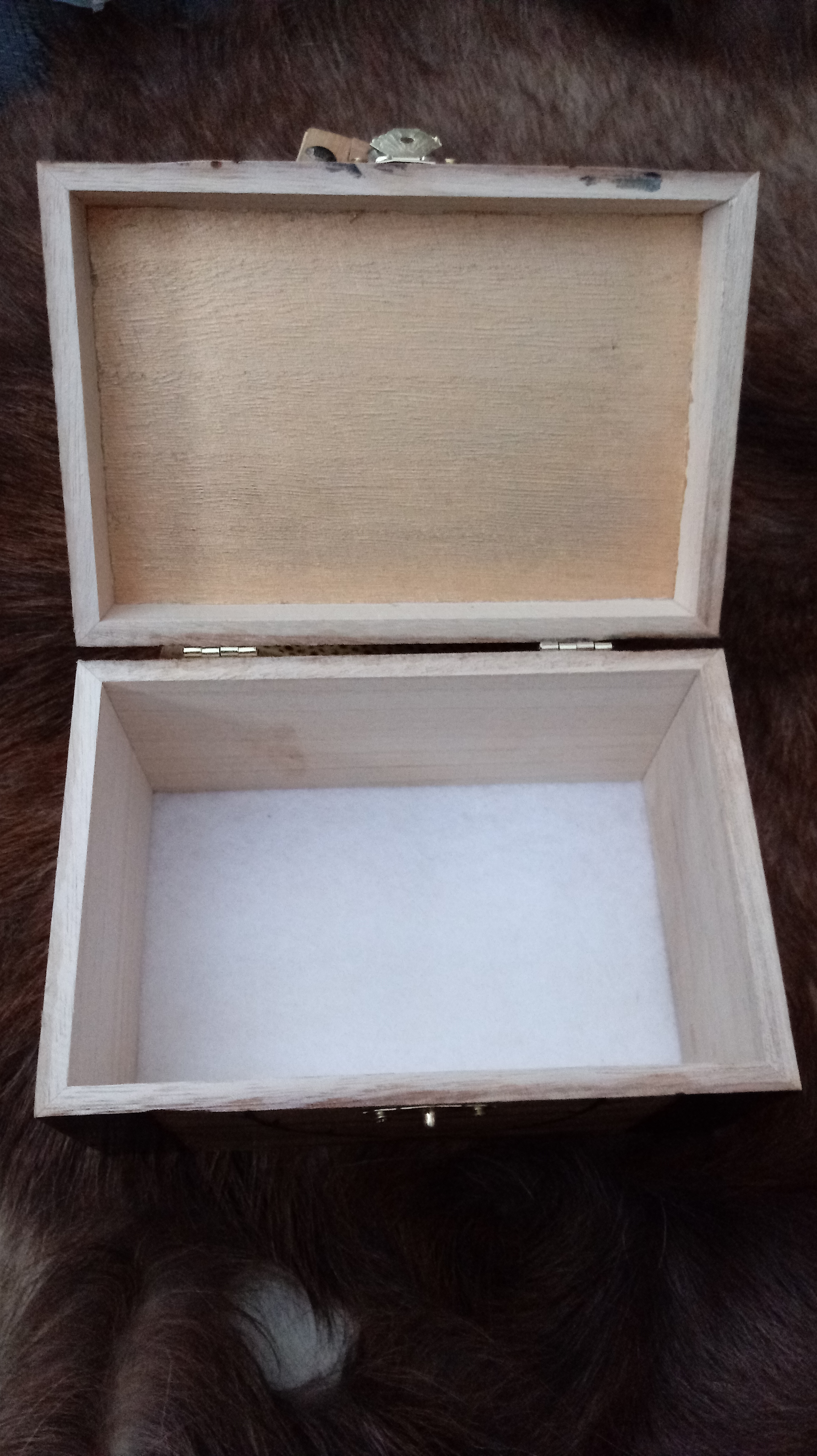 First up is this adorable little guy. He is decorated with Celtic-style knotwork on 5 out of six sides and has a white felt floor to protect your tiny precious items. All metalwork is bright brass. He measures 3 and 3/4 inches wide, 2 inches tall and 2 and 1/4 inches back to front. His guilding is very subtle, just a few tiny touches within the knots. He is $15 and unless USPS rates go up again he will still be the usual flat $4 to ship.