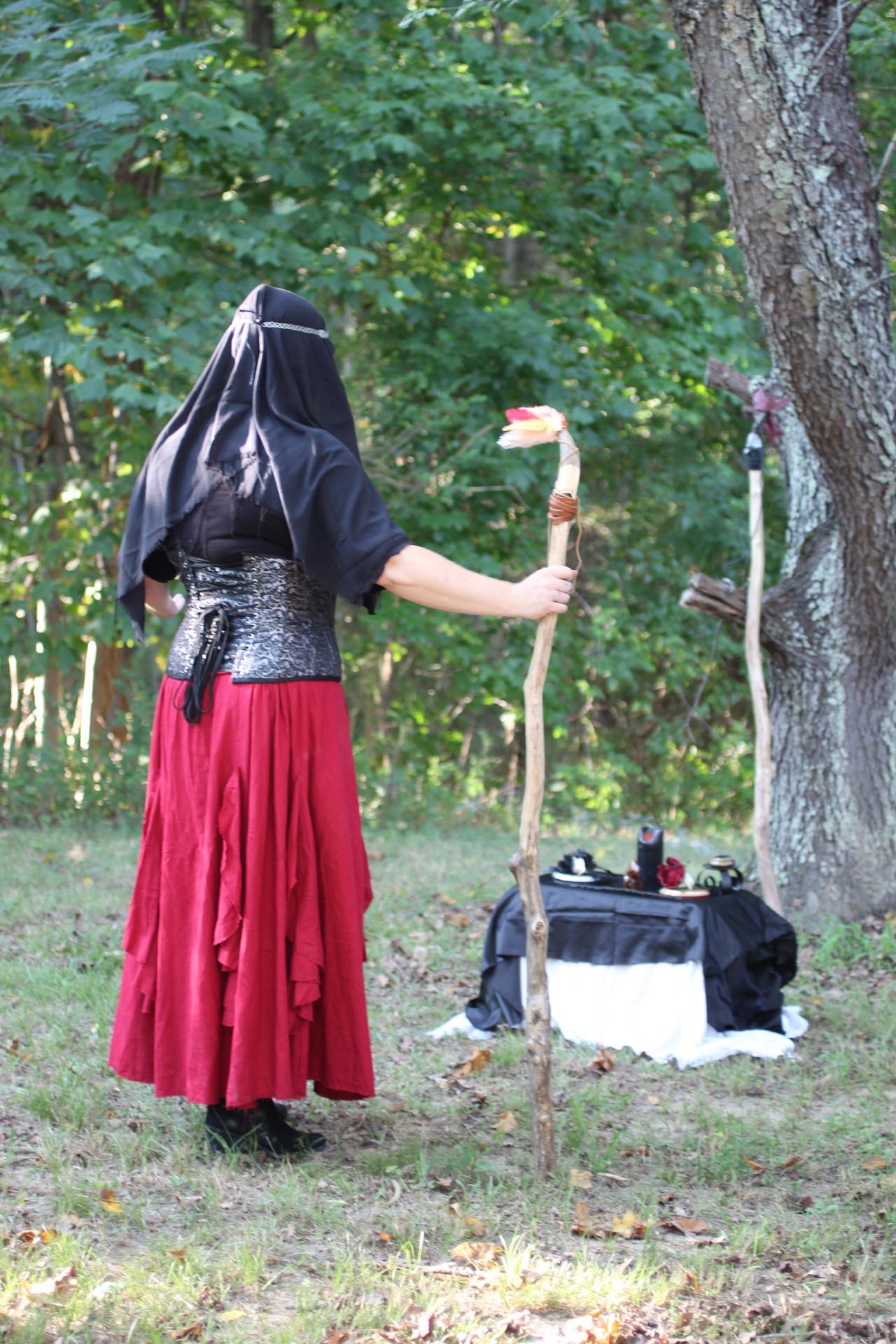 The ever-blooming bone gardens are not the only recently finished project in this workshop. A pair of working staffs of smoothed crepe myrtle, each topped with a cleaned and painted horn of a young goat and vibrantly dyed craft feathers, are waiting patiently for the right partners for their magical workings. Please note that these staffs, due to their size, will require special shipping. We are happy to arrange this, just send us a message via the ‘Contact Us’ page and we’ll do everything we can to get your staff to you safely.